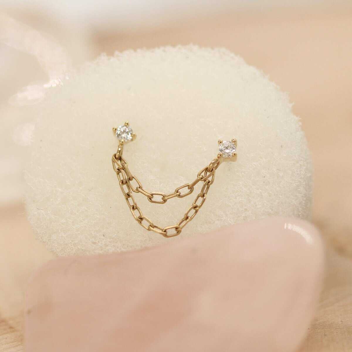 14 karaat gouden tops met 2x 1.5mm Swarovski zirkonia